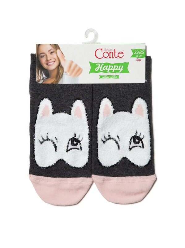 Мягкие, эластичные, удобные носки HAPPY плотно облегают ногу и не сползают. Вы оцените забавные рисунки из пушистой нити, которые созданы для того, чтобы поднимать настроение!