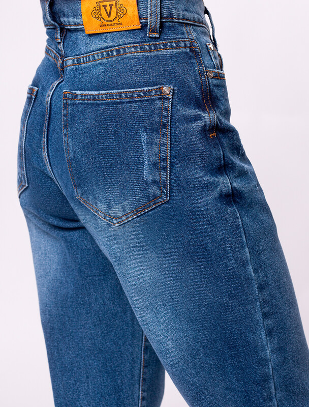 Джинсы mom-fit с высокой посадкой. Выполнены из эластичного хлопка с искусственными потертостями и заломами, придающими эффект вещи с историей. Свободно сидят по фигуре и создают ощущение настоящего комфорта. Модель mom-fit подходит абсолютно любому типу фигуры.