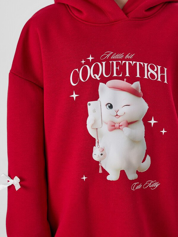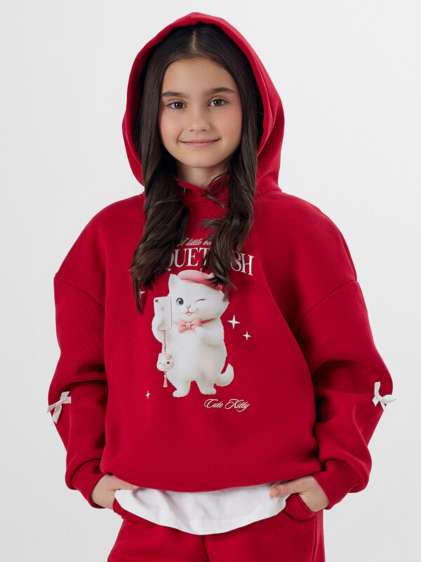 Стильное детское худи свободного силуэта, с капюшоном. В составе изделия - высококачественный натуральный хлопок. Модный вариант для девочек в интересной и оригинальной расцветке. Выполнено из футера с теплым подчесом. Горловина круглой формы. Капюшон со средним швом, на подкладке. Плечо спущено, рукав длинный. По низу рукава отрезная манжета из рибаны. Мягкая и невероятно комфортная модель для повседневной носки в школу, для внеклассных занятий и как базовая одежда на каждый день. Дополнить такое худи можно юбкой, брюками и другими вещами из детского гардероба. Широкий размерный и цветовой ряд. Рекомендуем!