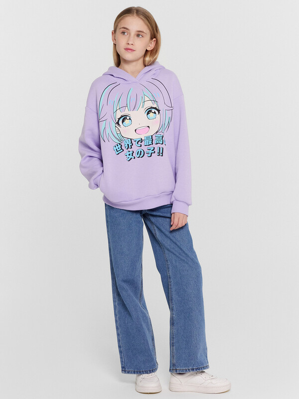 Анорак свободного силуэта, оверсайз. Плечо приспущено. Горловина округлой формы с капюшоном. Капюшон со средним швом и подкладкой из трикотажного кулирного полотна. Рукав свободный, длинный с отрезной манжетой из трикотажного полотна рибаны 2*2. В боковых швах, смещенных в сторону переда, обработаны карманы. По нижнему срезу притачной пояс из трикотажного полотна рибаны.