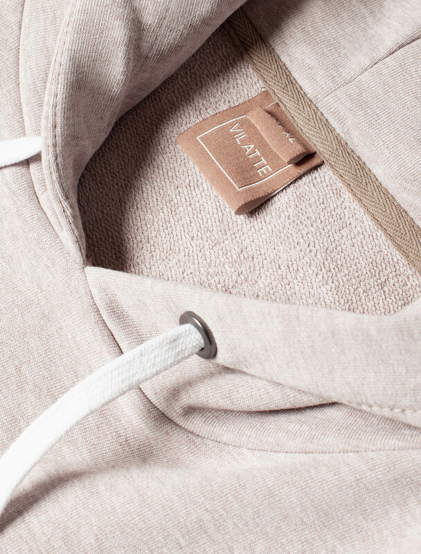 Худи выполнено из эластичного футера трехнитки-петля с эффектом меланж. Лаконичная модель с капюшоном и двумя боковыми карманами дополнена хлопковым шнуром с наконечниками из эко-кожи. Наличие эластана в составе гарантирует комфорт и формоустойчивость. Изделие не сковывает движений. В теплое время года можно использовать вместо верхней одежды.