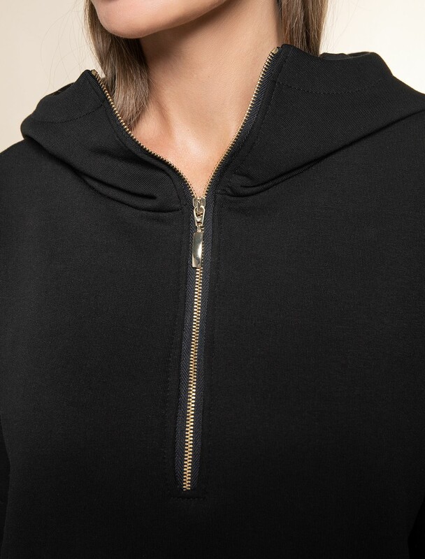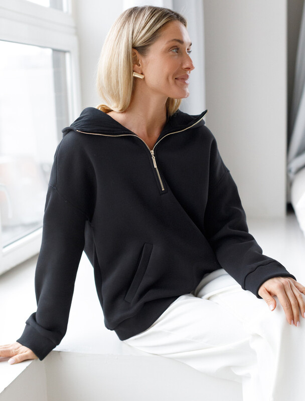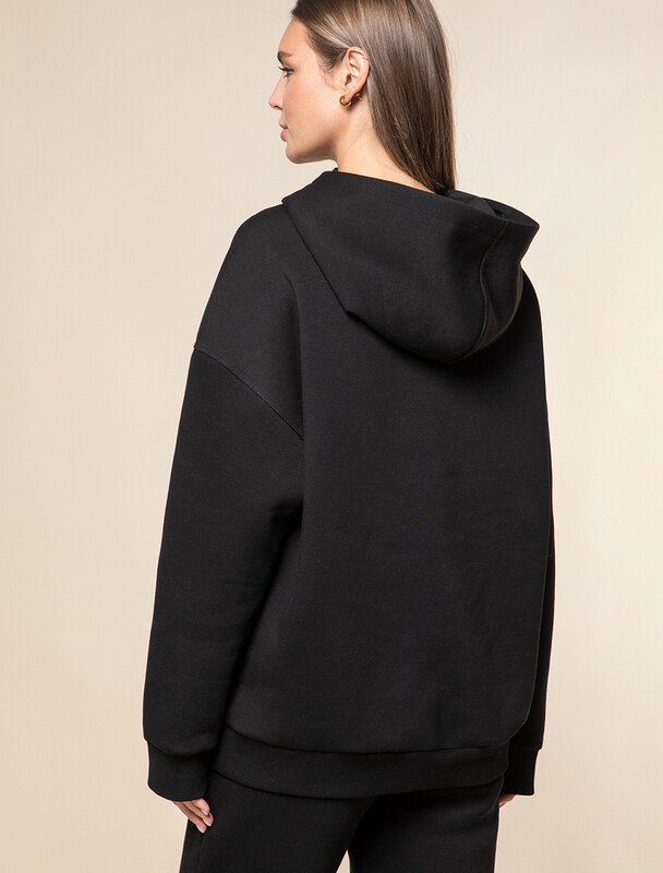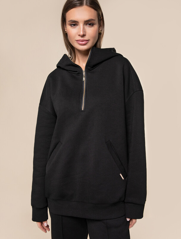 Худи с воротом на молнии выполнено из премиального футера трехнитки с теплым начесом. Модель дополнена боковыми карманами и золотистой фурнитурой, что поддерживает актуальный стиль спорт-шик. Свободный крой подходит для любой фигуры. Ранней осенью или поздней весной можно носить в качестве верхней одежды. Сочетается в костюме с брюками D44.133.