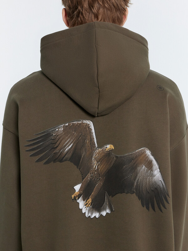 Горловина округлой формы с капюшоном. Капюшон со средним швом, на подкладке из основного полотна.