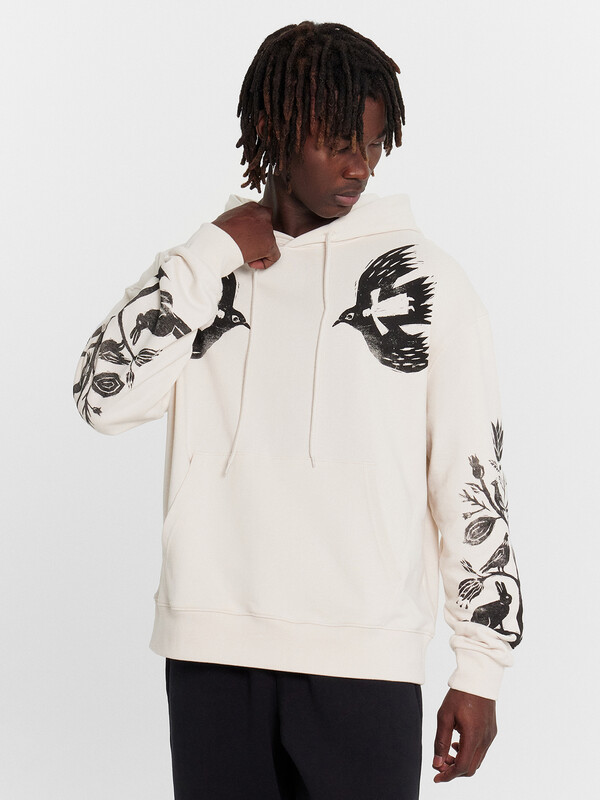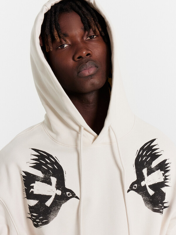 Горловина округлой формы с капюшоном. Капюшон двухшовный на подкладке из основного полотна.