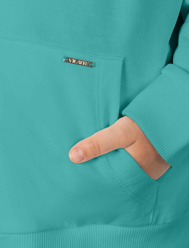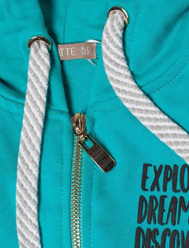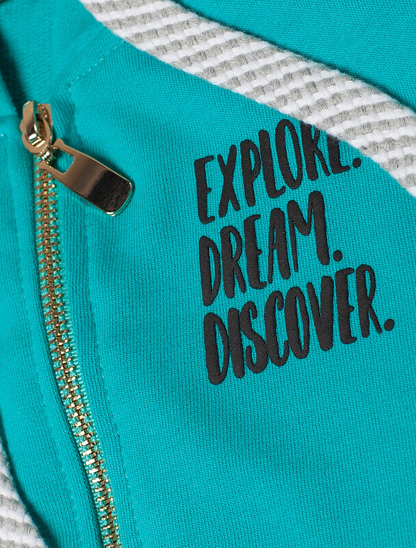 Худи цвета фуксия на молнии с длинными рукавами и спущенной линией плеч сшито из премиального хлопкового футера. Материал отлично поддерживает циркуляцию воздуха, а крой не ограничивает движения. Модель с высококачественной золотистой фурнитурой украшена устойчивым принтом. Идеально в костюме с брюками F44.060