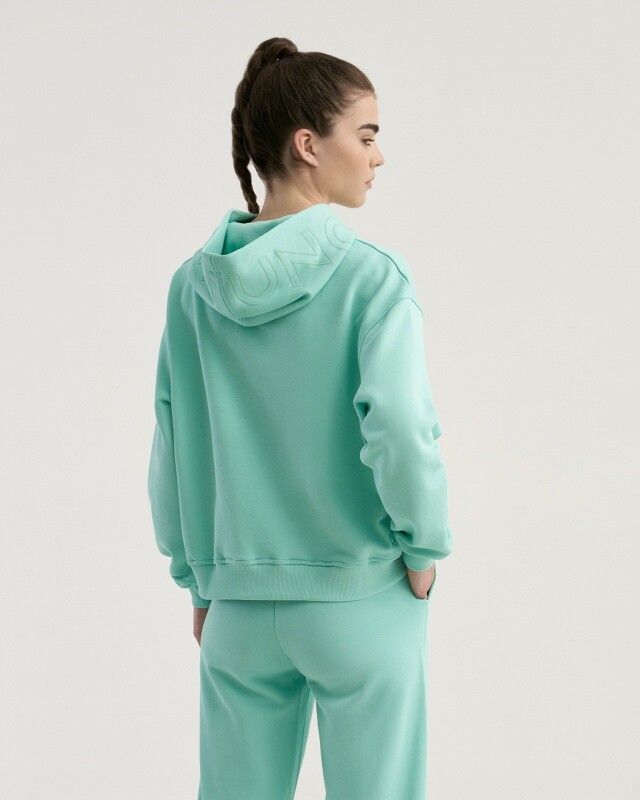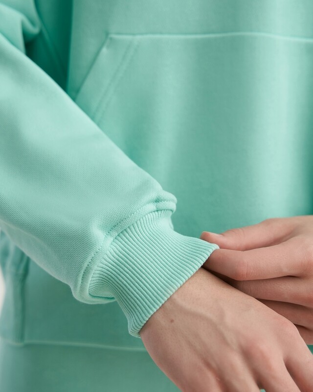 Худи с двойным капюшоном. Притачной бочок по переду, карман-кенгуру. Втачной рукав. Пояс и манжеты из рибаны.