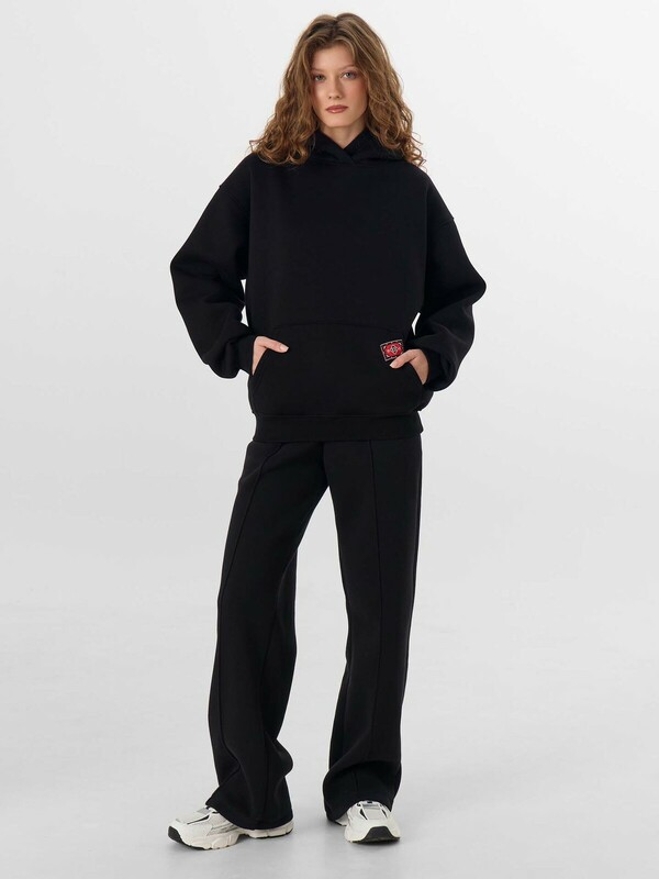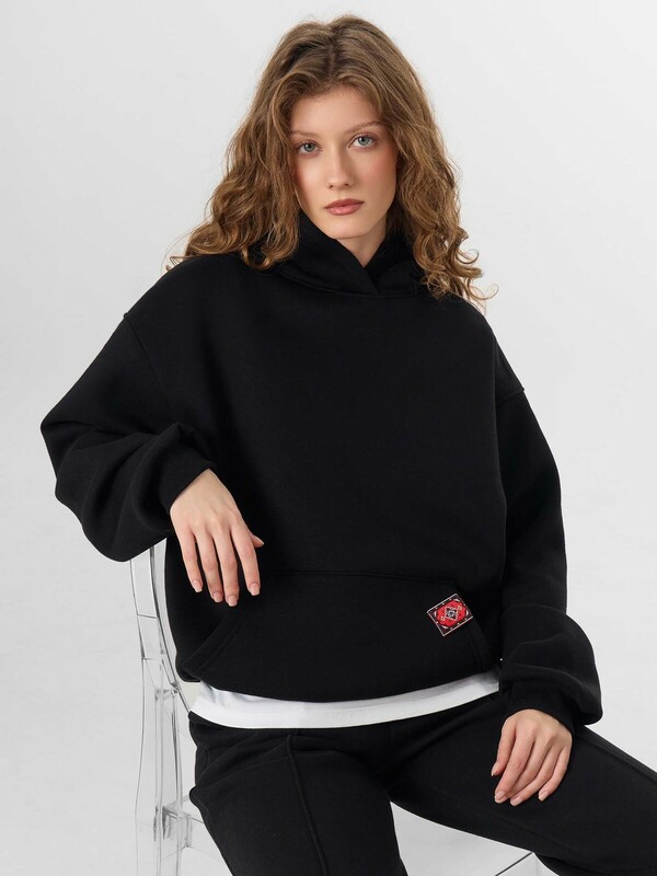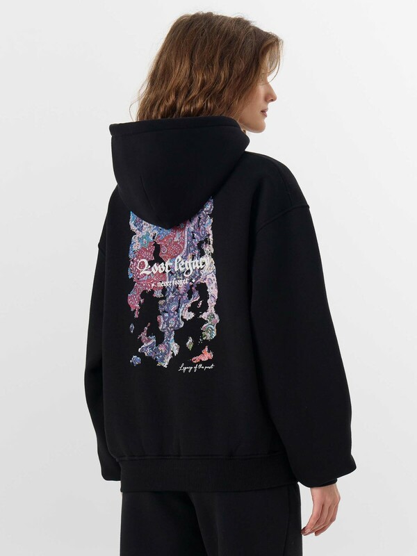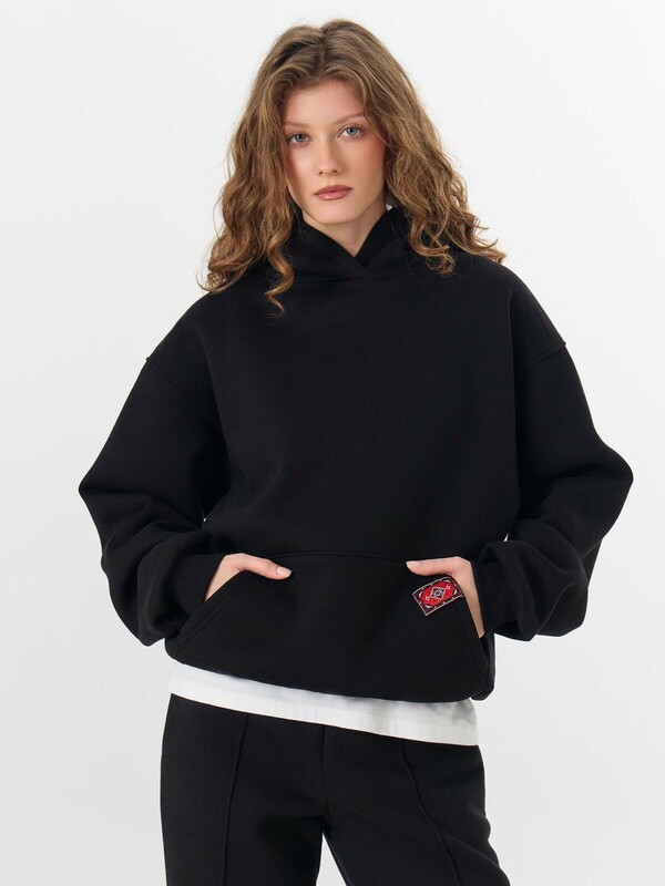 Худи женское свободного силуэта. Перед и спинка цельнокроеные.