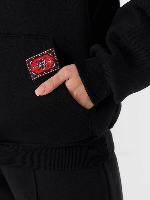 Рукав втачной, длинный, спущенный. По низу изделия и рукавов пояс и манжеты из рибаны. Худи с капюшоном и накладным карманом спереди.