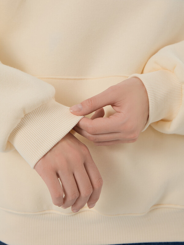 Рукав втачной, длинный, спущенный. По низу изделия и рукавов пояс и манжеты из рибаны. Худи с капюшоном и накладным карманом спереди.