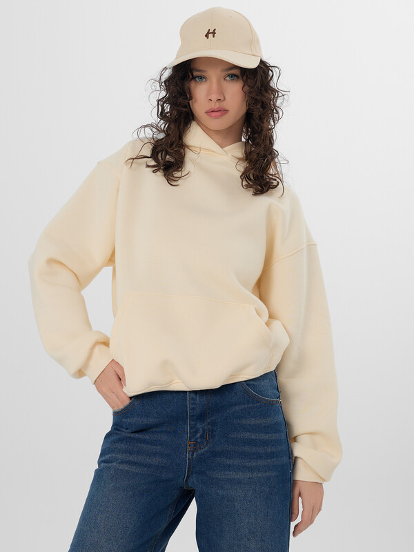 Худи женское свободного силуэта. Перед и спинка цельнокроеные.