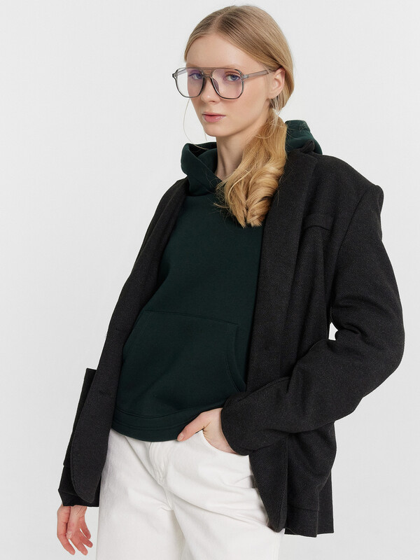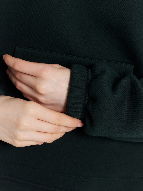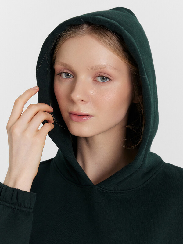 Женское укороченное худи свободного силуэта станет идеальным дополнением вашего гардероба. Модель с круглой горловиной и капюшоном обеспечивает современный и стильный вид. Длинные рукава с эластичными манжетами и спущенное плечо добавляют комфорт и непринуждённость. А накладной карман «кенгуру» спереди делает изделие практичным и удобным для хранения мелочей. Нижний срез аккуратно обработан швом вподгибку, что обеспечивает стильный завершенный вид. Худи, выполненное из мягкого футера с подчесом, подарит вам тепло и уют в прохладную погоду.