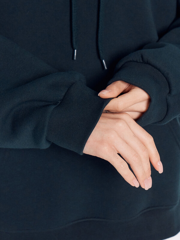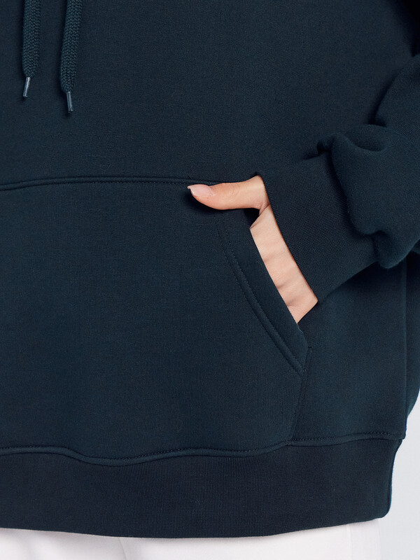 Женское худи оверсайз для создания повседневных расслабленных образов. Оно имеет капюшон на кулиске, обеспечивающий дополнительный уют и защиту от ветра. Длинные рукава со спущенной линией плеча и эластичными манжетами из рибаны добавляют комфорт и свободу движений. А накладной карман кенгуру позволяет удобно разместить необходимые мелочи или согреть руки. Для выполнения этого худи использовали нежный футер с подчесом, который эффективно сохраняет тепло и обеспечивает мягкость и уют в холодное время года.