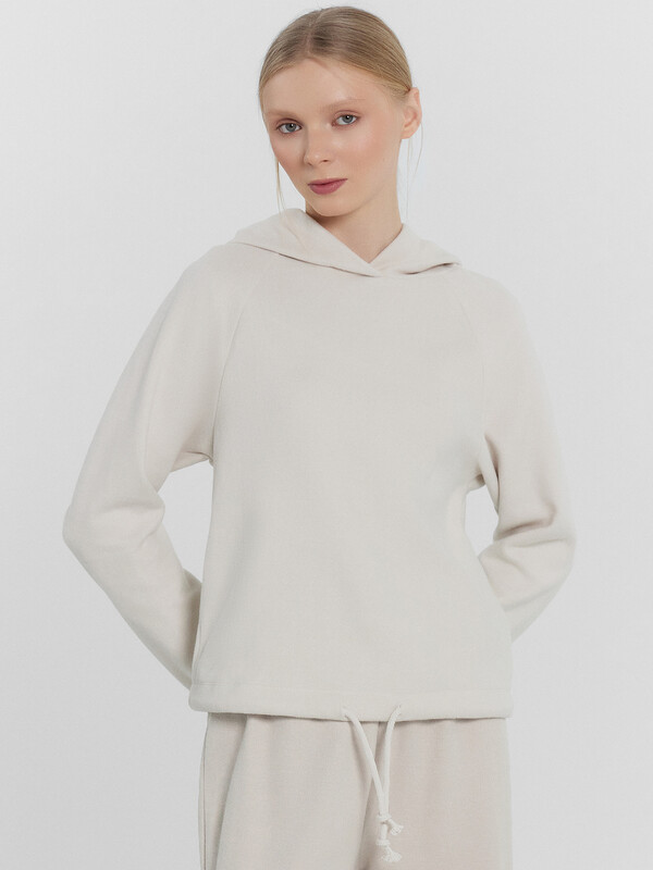 Женское худи свободного силуэта с капюшоном и длинными свободными рукавами выполнено из нежного материала селаник, обладающего уникальными свойствами, которые делают эту модель невероятно комфортной и уютной. Благодаря своему плотному, но в то же время легкому и мягкому плетению, селаник отлично сохраняет тепло и обеспечивает комфорт в прохладную погоду. Материал также устойчив к износу, что гарантирует долговечность изделия. Сочетайте это худи с подходящими брюками из этой же коллекции, чтобы создать стильный спортивный костюм, идеально подходящий для повседневного ношения и активного отдыха.