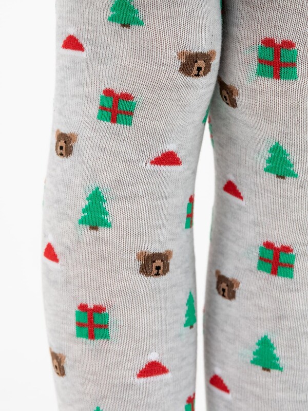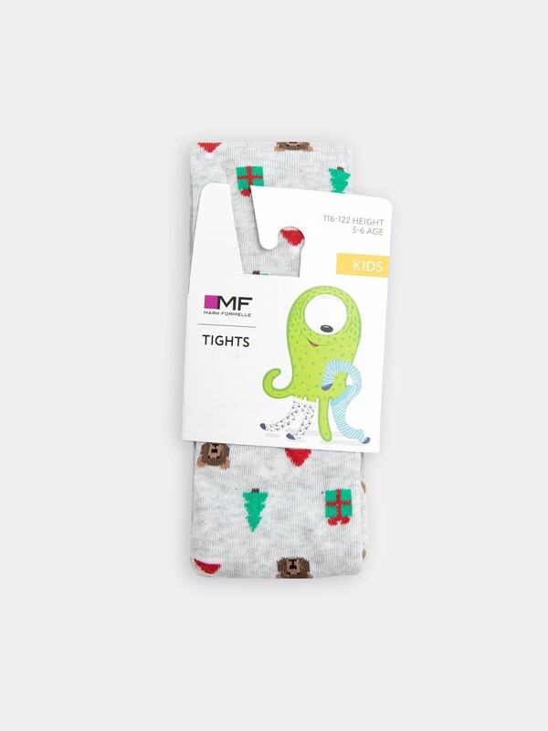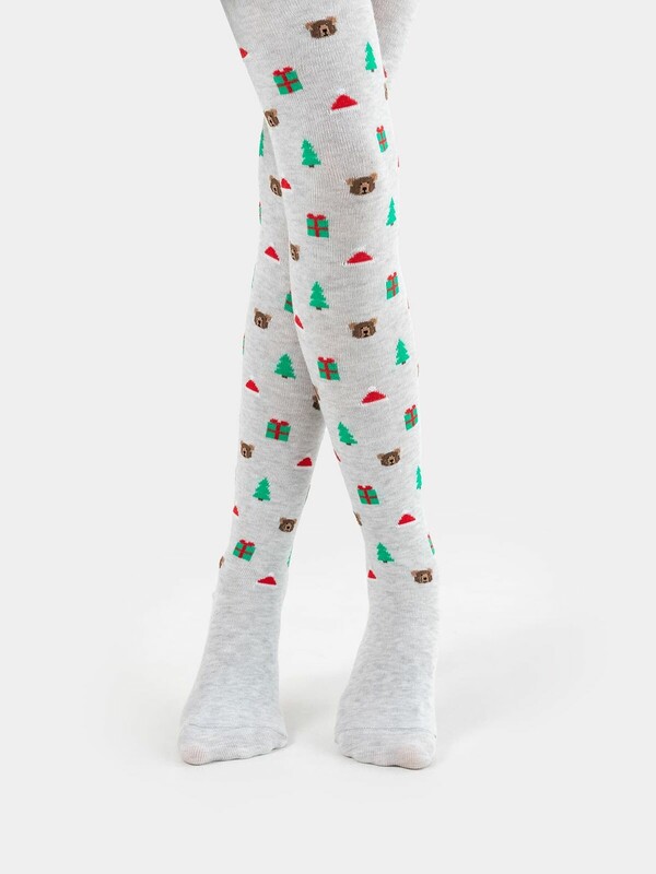 Рис.2636 Гладкие колготки с рисунком в виде новогодних ёлок и подарков