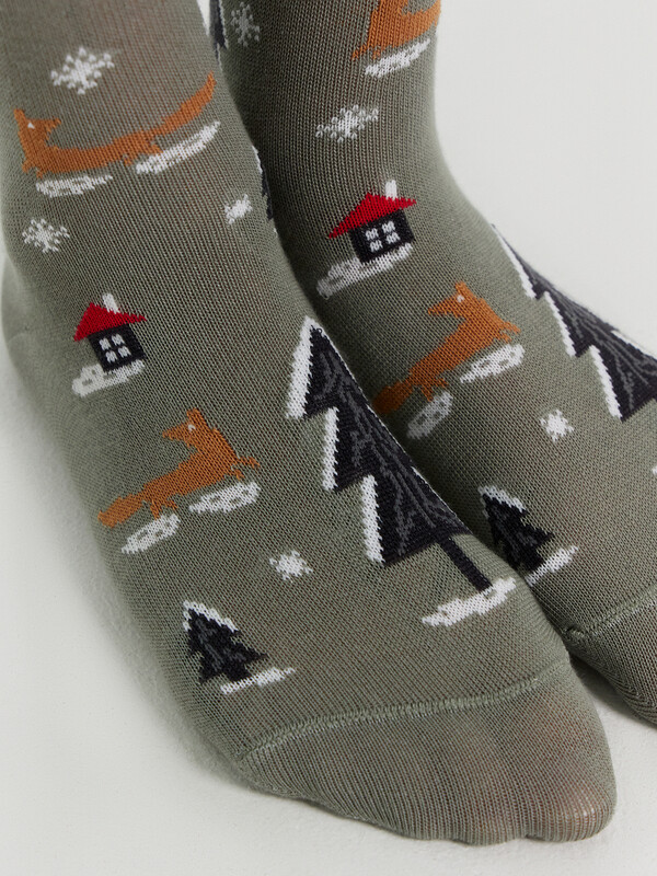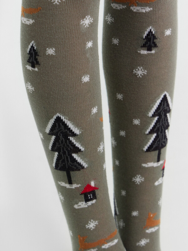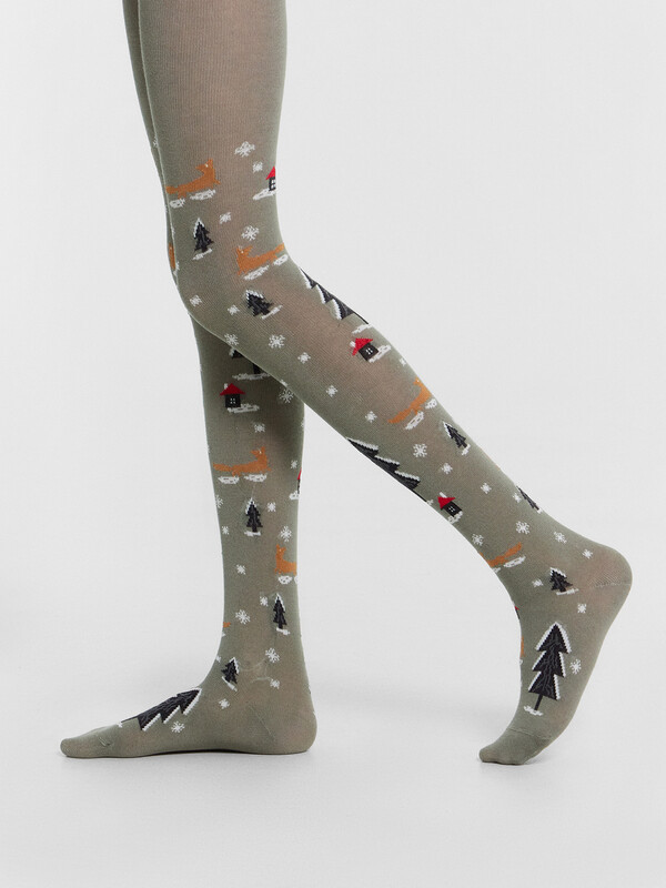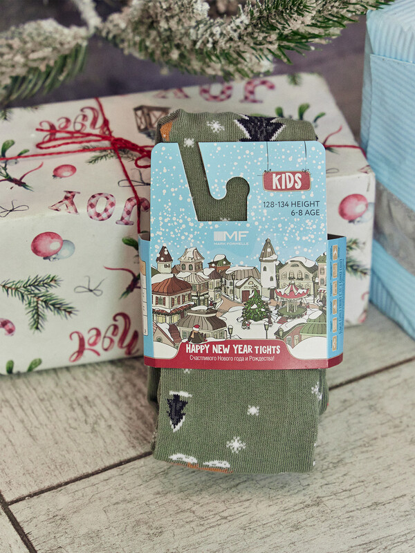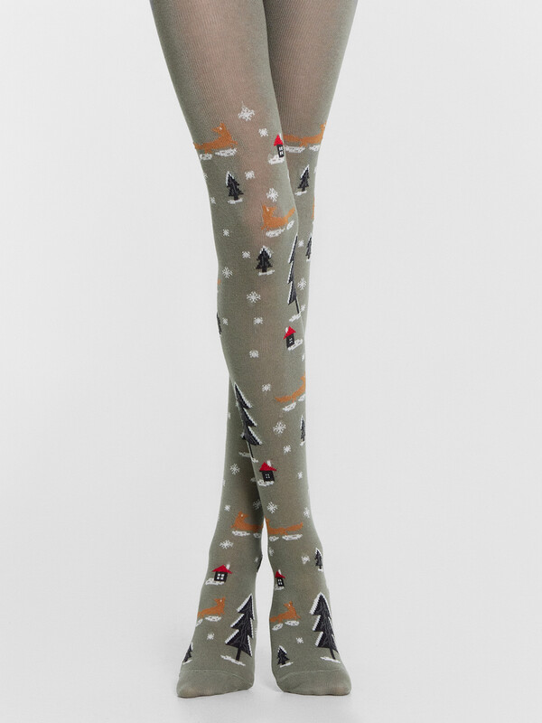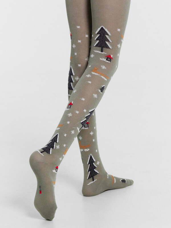 рис.3005 Гладкие колготки с рисунком в виде новогоднего паттерна.