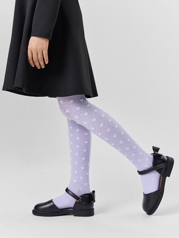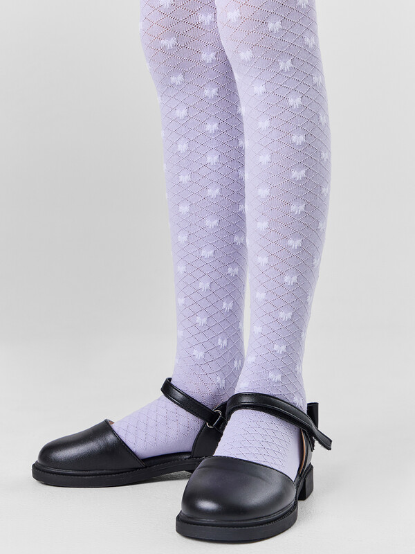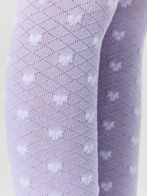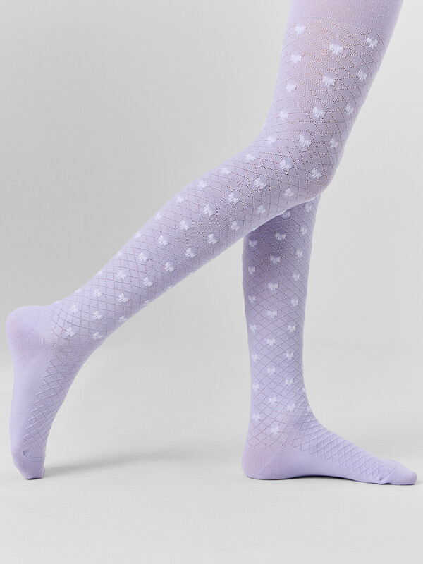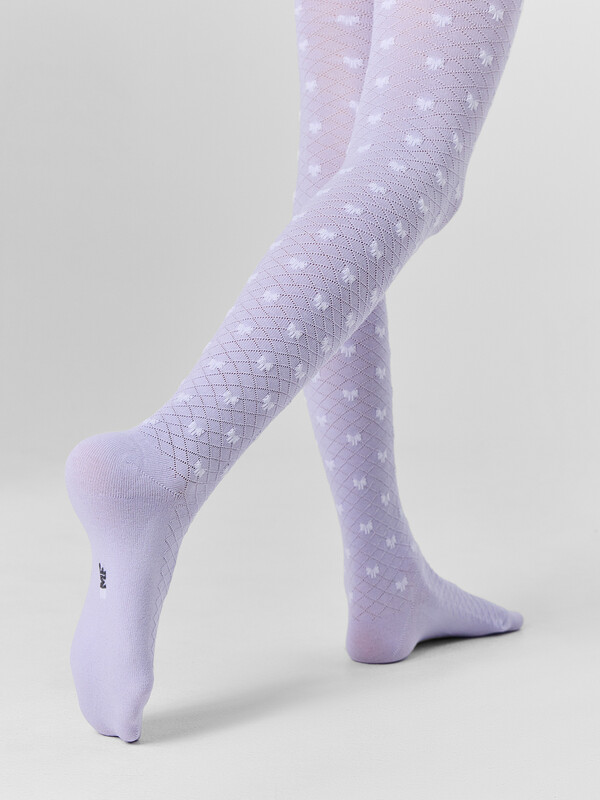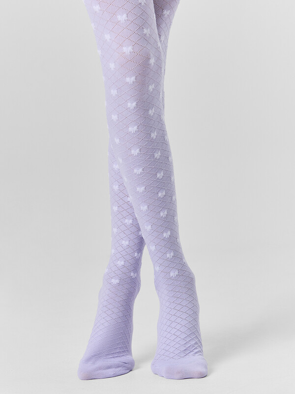 Рис.3550 Гладкие колготки с рисунком в виде сетки и бантика выполненным комбинированным переплетением.