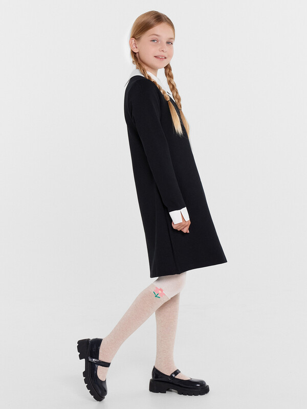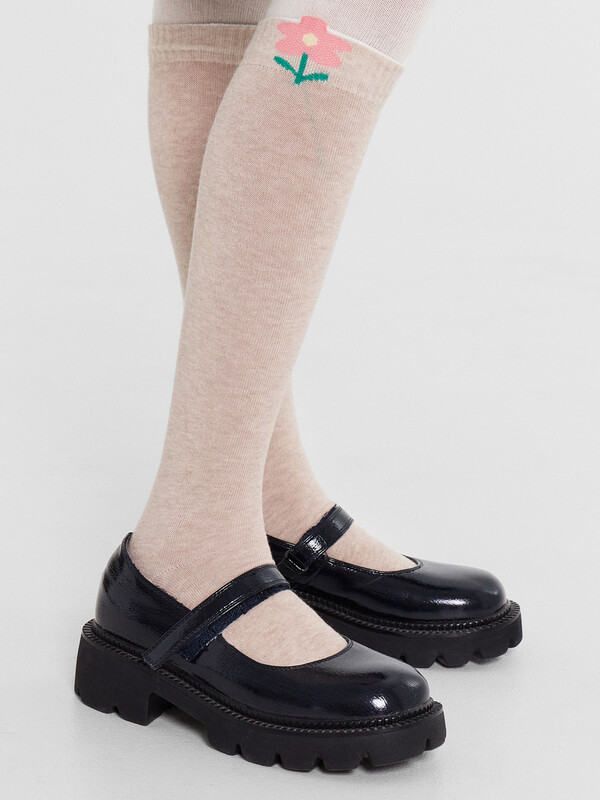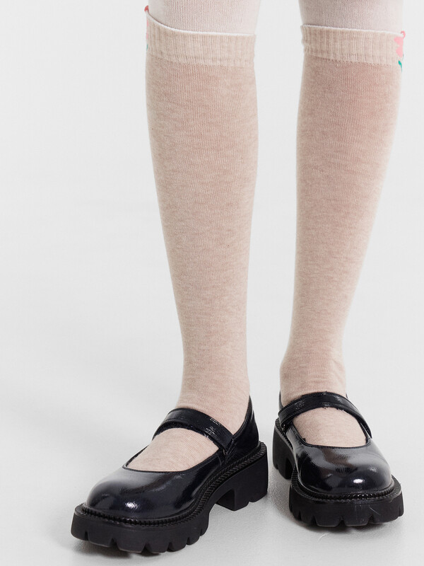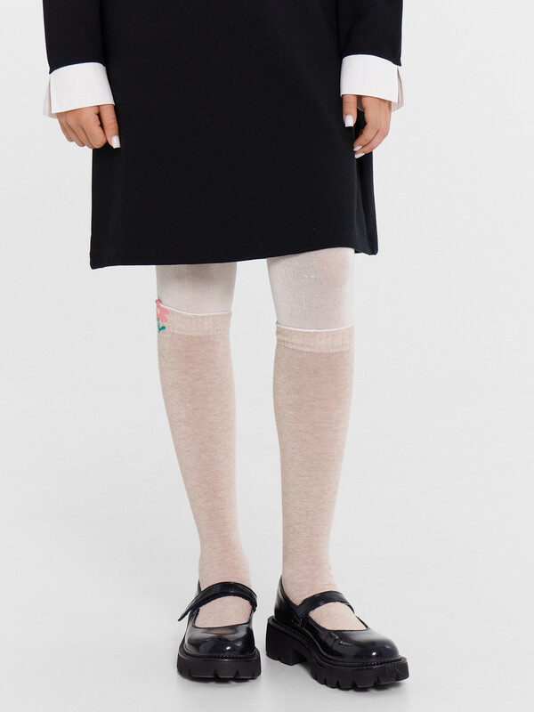 рис.2797 Колготки гладкие с имитацией гольф и рисунком на нижнем бортике в виде цветочка с элементом пикота.