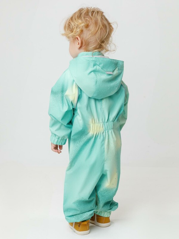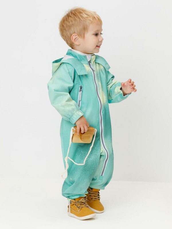 Ветровочный комбинезон ясельный из мембранной ткани с дополнительной тефлоновой обработкой. Данный вид обработки предохраняет изделие от загрязнения и лучше отводит влагу. Подклад из 100% хлопка. У изделия удлиненная молния для легкого одевания с защитой подбородка. Утяжка на капюшоне с потайными стопперами. По низу рукавов и брючин, а также на спинке изделия эластичная резинка для лучшего прилегания. Для фиксации комбинезона используются съемные силиконовые штрипки. В размерах 74-80 функциональные отвороты на рукавах и брючинах. Во всех изделиях верхнего ассортимента для безопасности ребенка предусмотрены светоотражающие элементы.