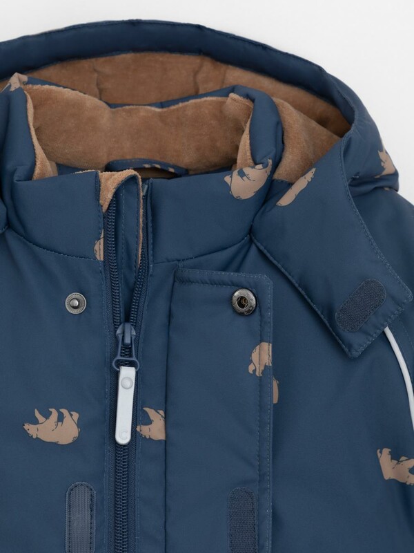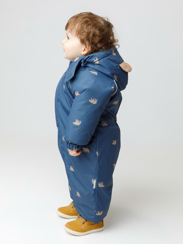Зимний комбинезон ясельный с утеплителем SEE®: 300 г/м2. Выполнен из мембранной ткани с дополнительной тефлоновой обработкой, которая предохраняет изделие от загрязнений и отталкивает влагу. Подклад комбинированный выполнен из велюра (80% хлопок, 20% полиэстер) и полиэстера Tricot. Комбинезон застёгивается на молнию и внешнюю планку на липучках, предусмотрена защита подбородка. Несъёмный капюшон имеет эластичную утяжку со стопперами. Резинка по спинке для лучшего прилегания. На груди карман на молнии. По рукавам и низу изделия эластичные манжеты, на ножках отстёгивающиеся силиконовые штрипки. В размерах с 62-68 по 80-86 в комплекте идут рукавицы и пинетки. Во всех изделиях верхнего ассортимента для безопасности ребёнка предусмотрены светоотражающие элементы.