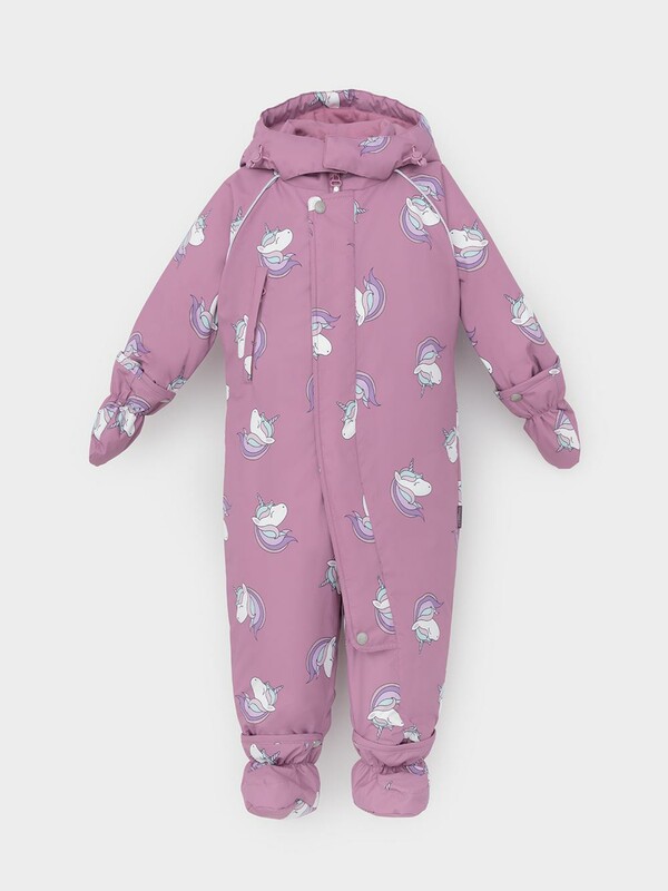 Зимний комбинезон ясельный с утеплителем SEE®: 250 г/м2. Выполнен из мембранной ткани с дополнительной тефлоновой обработкой, которая предохраняет изделие от загрязнений и отталкивает влагу. Подклад выполнен из 100% хлопка. Комбинезон застёгивается на молнию и внешнюю планку на липучках, предусмотрена защита подбородка. Несъёмный капюшон имеет эластичную утяжку со стопперами. Резинка по спинке для лучшего прилегания. На груди карман на молнии. По рукавам и низу изделия эластичные манжеты, на ножках отстёгивающиеся силиконовые штрипки. В размерах 74-80 и 80-86 в комплекте идут рукавицы и пинетки. Во всех изделиях верхнего ассортимента для безопасности ребёнка предусмотрены светоотражающие элементы.