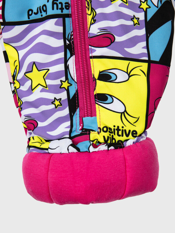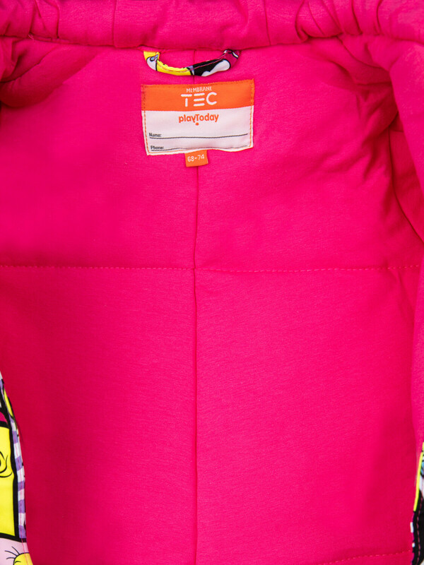 Мембранный материал делает этот яркий и модный комбинезон непромокаемым: мембрана не пропускает влагу снаружи, но выводит её изнутри, что крайне важно во время подвижных игр и занятий спортом.