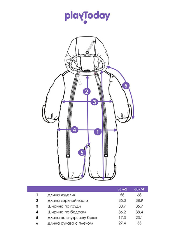 *Пожалуйста, обратите внимание, что указанный температурный режим является приблизительным и зависит от многих факторов, таких как возраст, физическое состояние, уровень активности ребенка и количество слоев одежды. Время, проведенное на открытом воздухе, и погодные условия, такие как холодный ветер, могут повлиять на тепловые характеристики изделия. Убедитесь, что защищены от холода голова, руки и ноги.