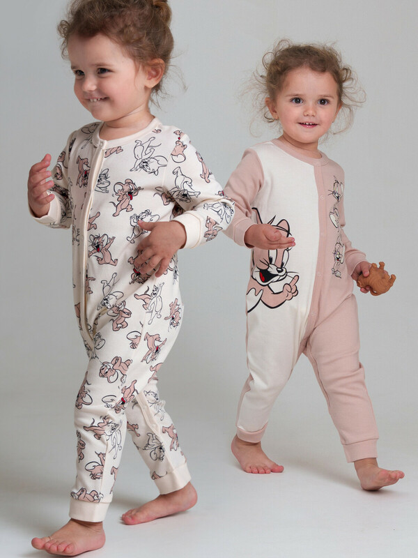 Набор детских комбинезонов для девочки. Комплект из 2 боди из натурального хлопкового двойного трикотажа на кнопках. Рукавички на размерах 56-62.