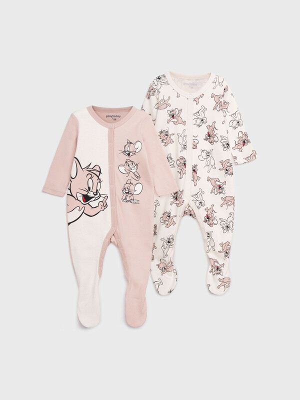 Набор детских комбинезонов для девочки. Комплект из 2 боди из натурального хлопкового двойного трикотажа на кнопках. Рукавички на размерах 56-62.