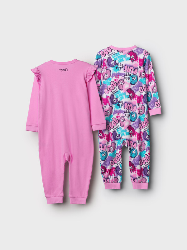 Комбинезон детский для девочки. Комбинезон с длинным рукавом из натурального хлопкового двойного трикотажа. 2 шт. в комплекте. 100% хлопок. Застежка на кнопки.