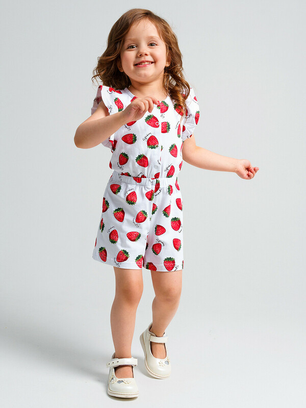 Комбинезон из качественного и приятного на ощупь трикотажа джерси. Высокое содержание хлопка 95%. Благодаря наличию эластана в составе ткани изделие проще в уходе и держит форму. Застежка на кнопки. Эластичный пояс со шнурком.
