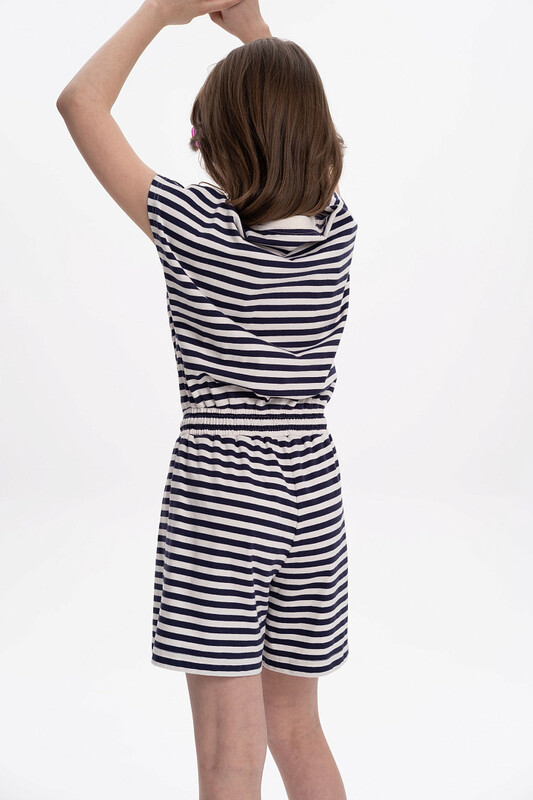 Принт полоска - актуальный в любой летний сезон, и очень популярен, в нем хотется отправиться ближе к морю. Пуговины сперед позволяют легко надевать и снимать комбинезон, а благодаря завязкам на поясе он подойдет как худым девчкам, так и более плотного телосложения.