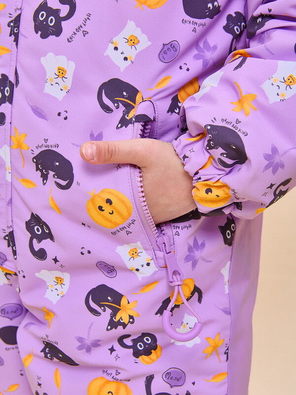 Комбинезон зимний детский из мембранной ткани для девочки. Модель свободного объёма с рукавами кроя реглан - ребёнку комфортно и не стесняет движения. На внешнюю поверхность материала нанесена водоотталкивающая пропитка (DWR), она задерживает грязь и влагу снаружи — ребёнок не промокнет от снега, а комбинезон легко отстирается. Также есть дополнительная пропитка на внутренней стороне ткани — для более надёжной защиты от промокания. Капюшон двухшовный, что обеспечивает анатомически правильную форму и комфортную посадку по голове. Капюшон не отстегивается, предусмотрена регулировка объема эластичными шнурами с пластиковыми стопперами. Внешний край капюшона декорирован мягким искусственным мехом, по текстуре напоминающим «барашка». Из этого же материала выполнена внутренняя подкладка капюшона, она комфортная, тактильно приятная. Удобная центральная застёжка на тракторную молнию. Тканевый стоппер защищает подбородок от зажима молнией. Фиксирующая строчка предохраняет планку от «заедания» в процессе застёгивания. Комбинезон тёплый — для оптимальной защиты от ветра и холода центральная молния дополнительно закрыта ветрозащитной планкой на кнопках и липучках (велькро). Спинка по талии присборена на внутреннюю резинку — комбинезон для девочки зимний безупречно садится по фигуре и не выглядит мешковато. Внутри комбинезона эластичные лямки — есть возможность снимать только верхнюю часть в помещении. Карманы с боковым входом закрываются на водонепроницаемую молнию со скрытыми звеньями — содержимое карманов не промокнет от снега во время активных игр на свежем воздухе. Внутри карманы утеплены мягким флисом. Замок дополнен тканевыми стопперами, что предохраняет его от разрыва. На пуллере эластичный запаянный шнур — ребёнку легко открывать и закрывать даже в варежках. Манжеты рукавов и брючин на комфортных широких резинках, это предохраняет от попадания внутрь снега. На муфтах брюк антискользящая резинка. Комбинезон дополнен съёмными силиконовыми штрипками. Область колен и нижняя часть спинки усилены более плотной тканью — можно смело кататься с горки и ползать на коленках сколько захочется. В каждом изделии нейм-лейбл! Ребёнок не потеряется и не потеряет комбинезон! Световозвращающие канты в проймах переда и спинки — безопасность в тёмное время суток. Модель красивого трендового цвета декорирована милым девичьим принтом. Комбинезон на молнии неприхотлив в уходе — ухаживать согласно указанным на вшивных ярлыках рекомендациям. Изделие выполнено из полиэстера с мембраной — оно не только защищает от холода и влаги, но и хорошо пропускает воздух, давая коже ребёнка дышать. Подкладка из мягкого, тёплого и дышащего флиса (по переду и спинке). В рукавах и штанинах подкладка из тонкого и гладкого полиэстера — благодаря этому ребенку легко надевать комбинезон, руки и ноги не путаются в рукавах и штанинах, а легко проскальзывают. Зимний комбинезон детский идеален для маленьких девочек дошкольного и младшего школьного возраста. Рекомендуемый температурный режим: не ниже минус 25 градусов. В изделии использован один из высокотехнологичных утеплителей — феллекс 260 г/м2. Дышащие свойства мембраны: не менее 3000 г/м2/сут. — ребёнку будет комфортно на прогулке. Модель подходит для носки в детский сад, для прогулок и отдыха н