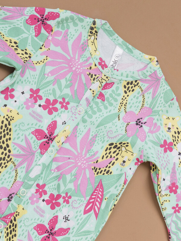 Комбинезон для девочки трикотажный из интерлока. Нежный мятный оттенок с цветочным принтом. Длинные рукава и закрытые носочки надежно защищают от прохлады. Удобная застежка на кнопках по всей длине – легко менять подгузник. Мягкий трикотаж не раздражает нежную кожу, позволяет ей дышать. Гипоаллергенные материалы, мягкие швы, удобная посадка.Характеристики:Ткань: Интерлок пенье 100% хлопокПроизводитель: batik