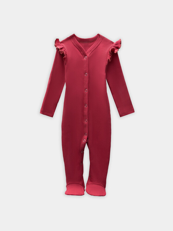 Комбинезон выполнен из рибаны. Спинка цельнокроенная.