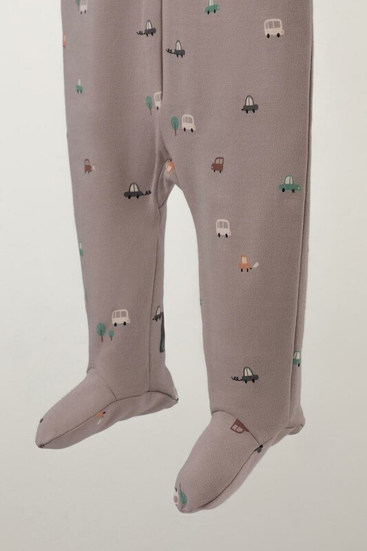 Комбинезон для новорождённых из тонкого трикотажа с начёсом, произведённого из натурального хлопка. Застёгивается спереди на молнию с защитой подбородка. Оригинальная набивка выполнена из стойких гипоаллергенных текстильных красителей. Все трикотажные полотна производятся в соответствии с нормами Швейцарского сертификата ЭкоТекс.