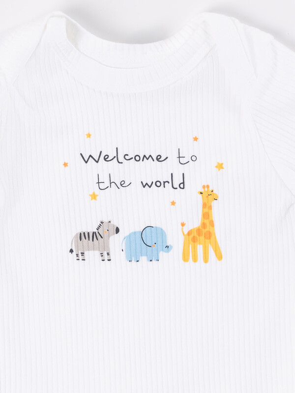 Рукава короткие, втачные, одношовные. Низ рукавов обработан на 2х игольной плоскошовной машине швом в подгибку. Нижние края изделия по середине фиксируются на книпперы 9 мм- 2 шт. Ползунки с открытыми ножками. Пояс цельнокроенный, с эл. тесьмой внутри (внутрення резина 30RV), ширина 30 мм. В пояс вставлена ХБ тесьма, ширина 10 мм. По низу изделия притачные манжеты из трикотажной рибаны 1*1 R-59, R11-049.01.230, 97% хлопок; 3% эластан, 230 гр, 165 см.