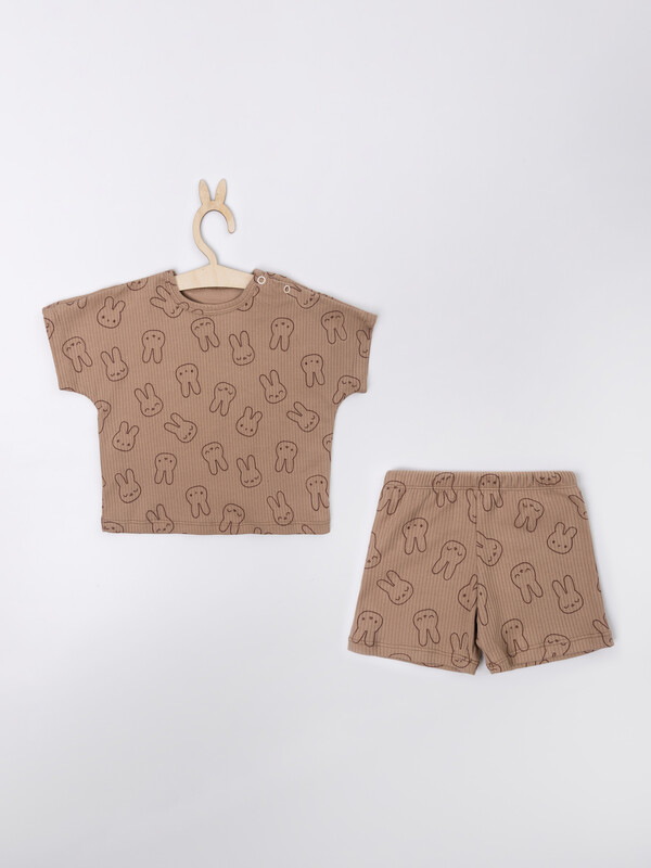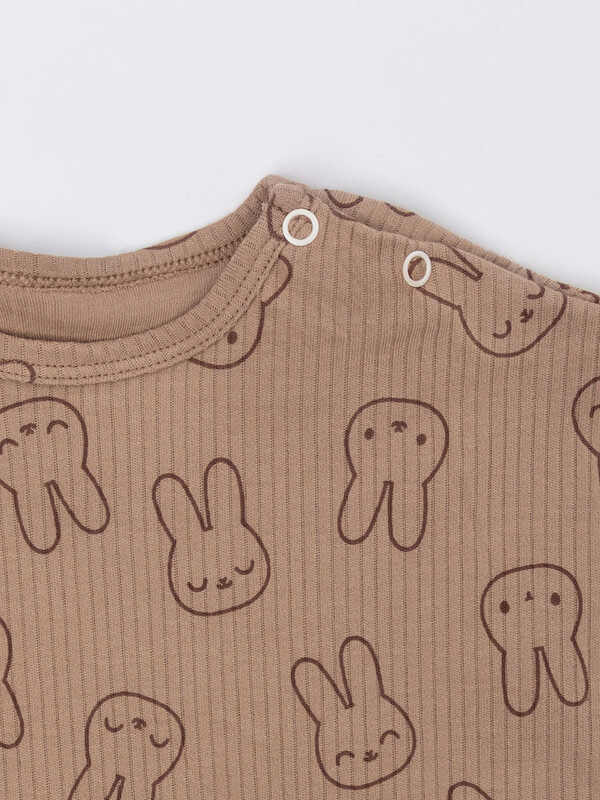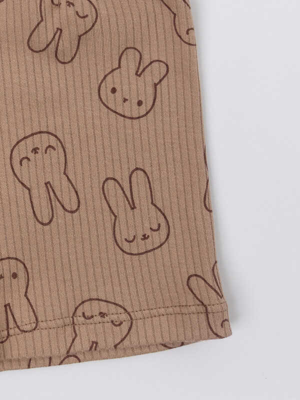 Комплект полностью выполнен из трикотажного полотна интерлок в рубчик 100% хлопок, 215 гр/м2, 145 см (INT-143, INT-001.01.215).
