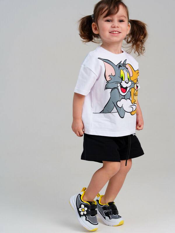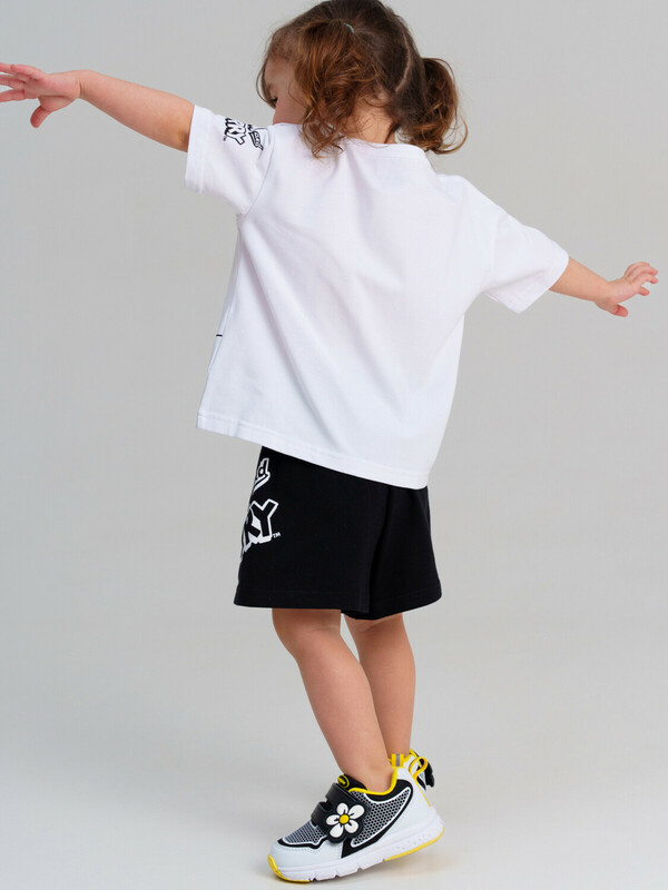Костюм детский для девочки. Костюм детский для девочки. Футболка с высоким содержанием хлопка 95%. Благодаря наличию эластана в составе ткани изделие проще в уходе и держит форму. Шорты на резинке со шнурком. Модель выполнена из качественного и приятного на ощупь трикотажа.