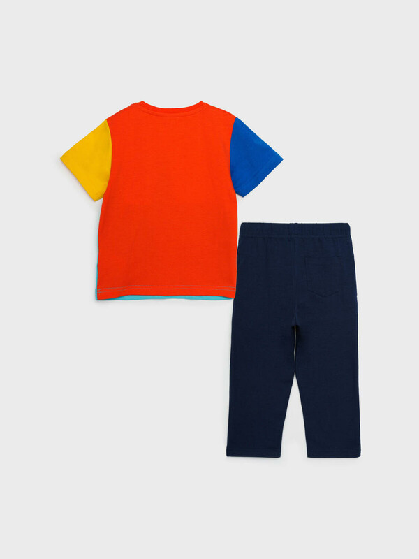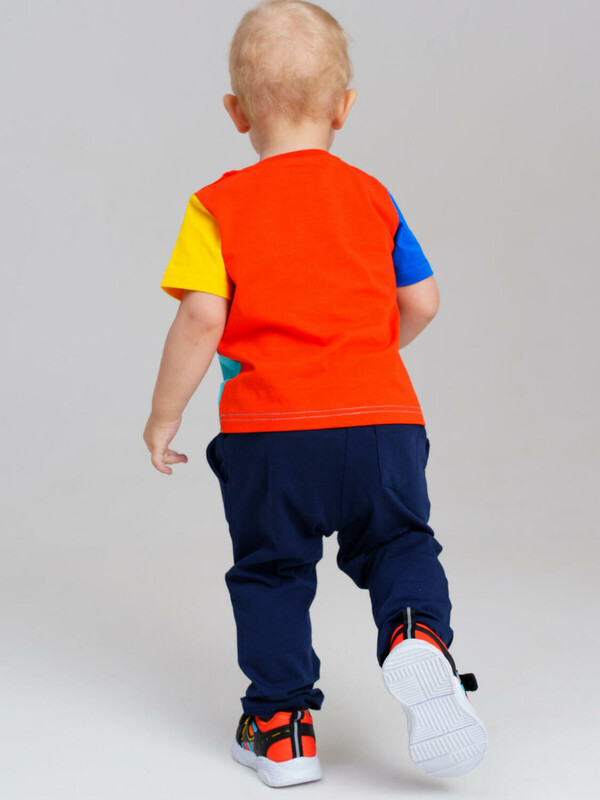 Костюм детский для мальчика. Комплект: футболка, шорты с высоким содержанием хлопка 95%. Благодаря наличию эластана в составе ткани изделие проще в уходе и держит форму. Футболка с застежкой на кнопки на плече. Штаны на резинке со шнурком. Боковые карманы.