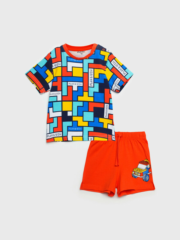 Костюм детский для мальчика. Комплект: футболка, шорты с высоким содержанием хлопка 95%. Благодаря наличию эластана в составе ткани изделие проще в уходе и держит форму. Шорты на резинке со шнурком. Застежка на плече на кнопки.