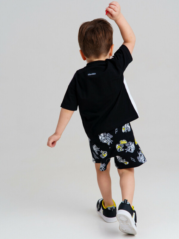Костюм детский для мальчика. Комплект: футболка, шорты с высоким содержанием хлопка. Шорты на резинке со шнурком. Боковые карманы.