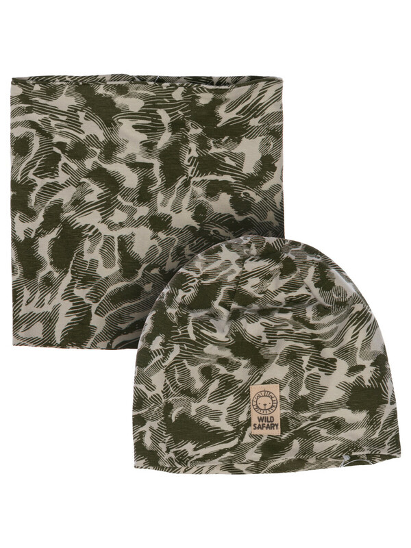 Комплект трикотажный для мальчиков: шапка, снуд. Высокое содержание хлопка. Благодаря наличию эластана в составе ткани изделие проще в уходе и держит форму.