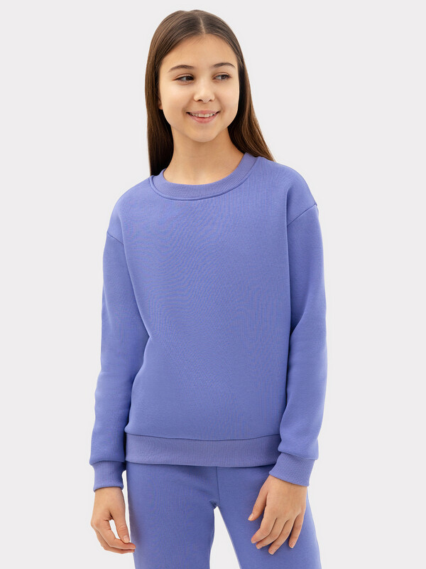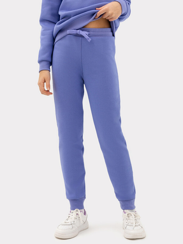 Комплект из трикотажного футера с нежным и теплым подчесом. Джемпер свободного силуэта, со углубленной проймой, длинными рукавами на манжетах и круглой горловиной. Брюки средней посадки, прямые, слегка зауженые к низу, с регулировочным шнурком в поясе. Отличный выбор для прохладной погоды!