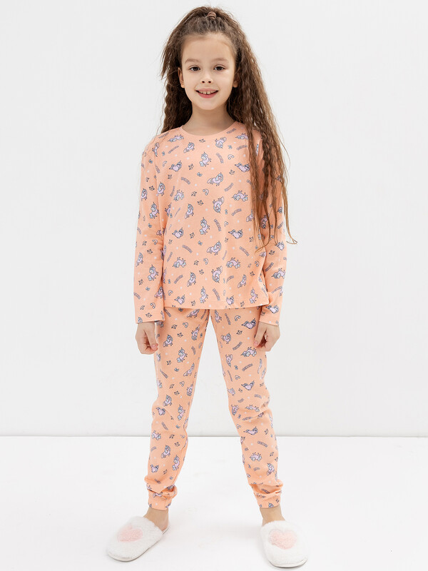 Удобная пижама для девочки с брюками и лонгсливом из высококачественного хлопка. Удобный, нежный и натуральный материал пижамы не раздражает детскую кожу, позволяет ей дышать. Комфортный лонгслив прямого силуэта и брюки не стесняют движений, в них удобно бегать и прыгать. Такой комплект детский подойдет также как отличный вариант домашней детской одежды. В ней тепло, удобно и комфортно. Даже самые активные непоседы будут чувствовать себя отлично, так как материал пропускает воздух, отлично впитывает влагу и быстро сохнет. Подходит на любое время года — универсальный вариант. В линейке есть новогодние пижамы для детей, интересные базовые расцветки на каждый день, а также модели с принтами. Пижамы для девочек от Mark Formelle отличный выбор удобной детской домашней одежды на каждый день. Порадуйте себя и близких подарками!
