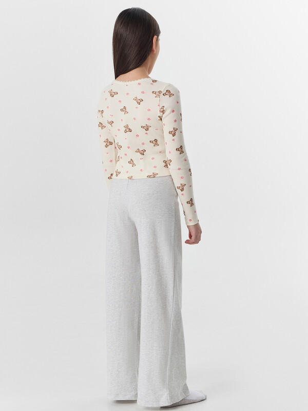 Комплект для девочек состоит из джемпера и брюк.