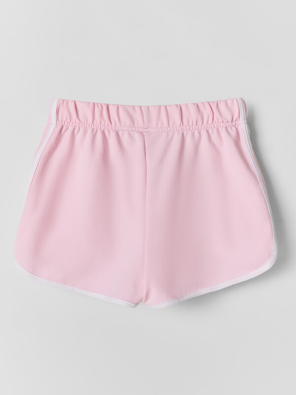 Шорты свободного силуэта. Пояс цельнокроенный с эластичной тесьмой внутри, 40RV. Низ изделия с фигурным разрезом по бокам и контрастной окантовкой..