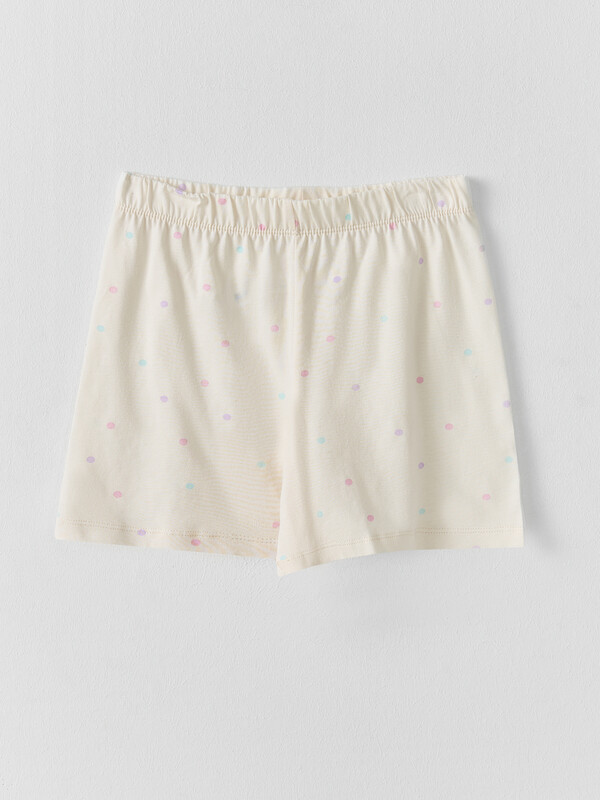 Шорты прямого силуэта длиной до колен. Пояс цельнокроенный с эластичной тесьмой внутри. Низ шорт обработан на 2-х игольной плоскошовной машине швом в подгибку.