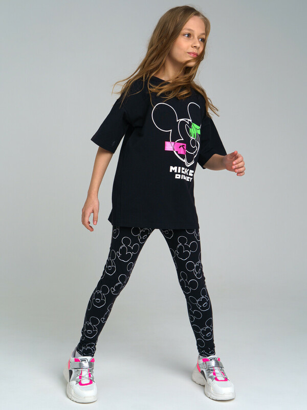 Комплект с персонажем Disney: футболка, легинсы. Из качественного эластичного и приятного на ощупь трикотажа джерси. Высокое содержание хлопка 95%. Благодаря наличию эластана в составе ткани, изделие держит форму и меньше мнется.