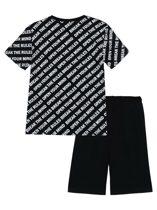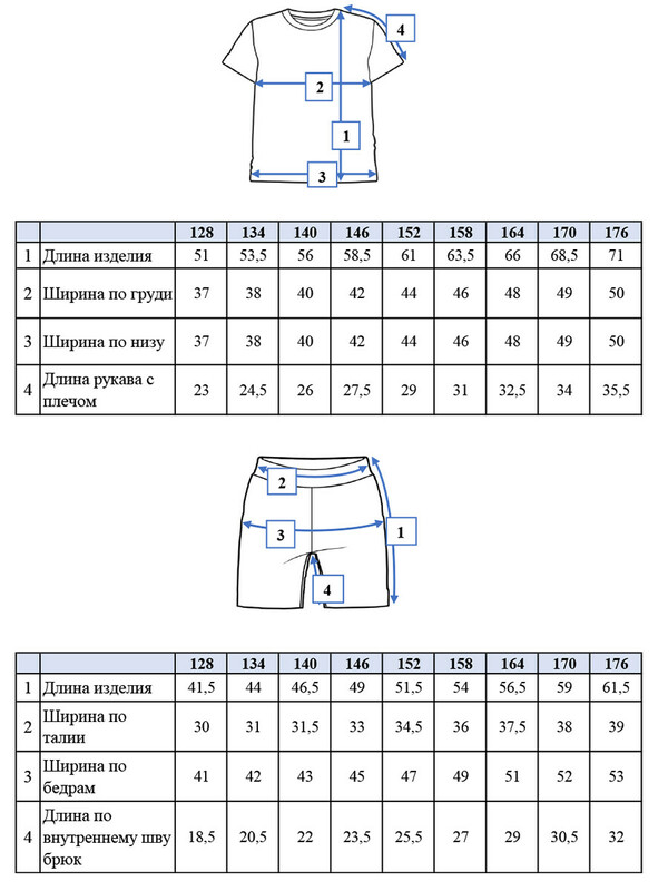 Комплект: футболка, шорты. Высокое содержание хлопка 95%. Благодаря наличию эластана в составе ткани, изделие проще в уходе и держит форму. Оптимальная посадка: шорты не сползают при движении. Эластичный пояс со шнурком.