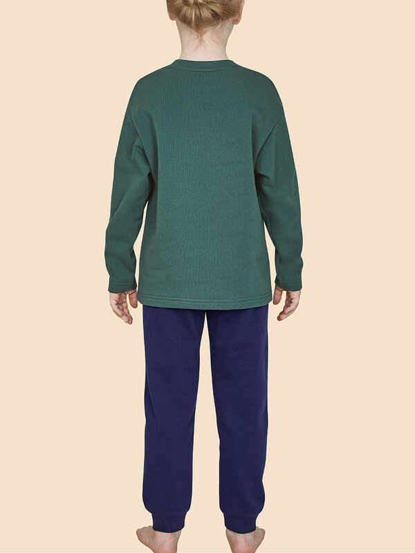 Пижама детская для мальчика утепленная. Натуральный состав ткани из 100% хлопка (футер с начёсом) обеспечивает изделию мягкость, гипоаллергенность и воздухопроницаемость. Благодаря этому сон комфортный и качественный. В пижаме из хлопка ребёнку будет тепло, даже если он сбросит одеяло. Джемпер и брюки умеренного объёма, рукава широкие и свободные — комплект для сна очень удобен. В поясе и по низу брюк мягкая и широкая резинка — не перекручивается и не давит. Отделка горловины джемпера из эластичной рибаны — ребёнку удобно надевать и снимать пижаму. А также рибана сохраняет отличную форму надолго. Хлопковая пижама украшена стильным принтом в актуальной университетской эстетике, надписи переводятся: «позитивная деятельность», «спорт!», «всегда чувствуй себя хорошо». Детская пижама для мальчика неприхотлива в уходе. Принт эластичный и мягкий, без проблем переносит частые стирки. Детская пижама с брюками подходит для сна как дома, так и в детском саду — отличный выбор для вашего ребёнка! Помните о правильном уходе за изделием: рекомендуется стирать при температуре не выше 30 °C, без предварительного замачивания, с изнанки. Это поможет сохранить качество и цвет пижамы на длительное время.